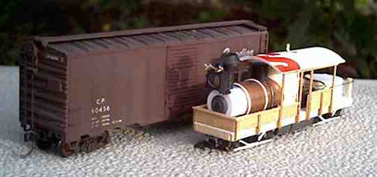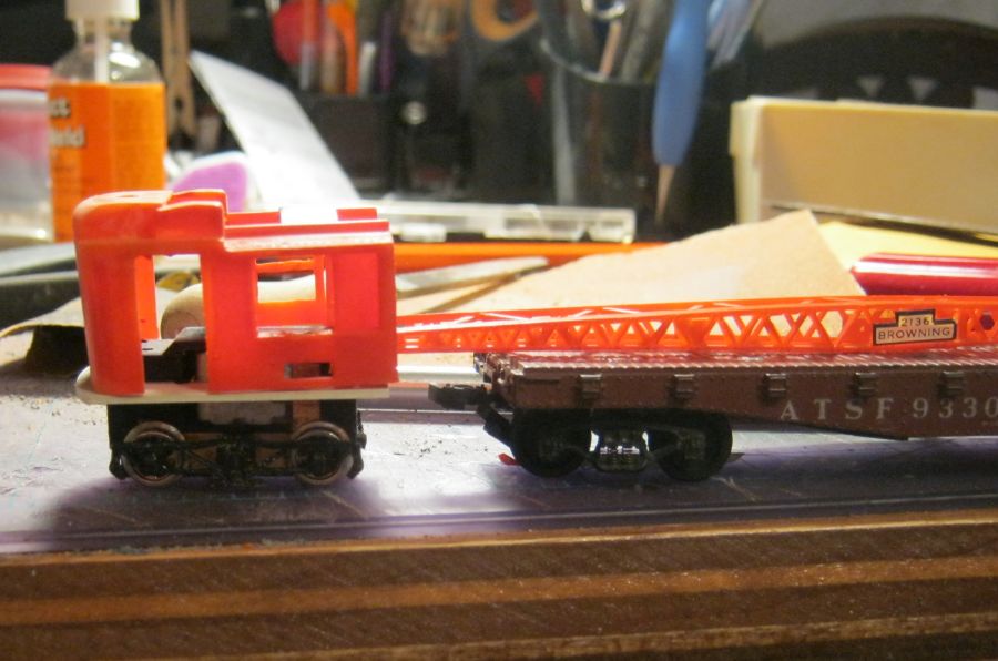 I used a Model Power RS15 as the base mechanism...a huge mistake, as it is on of those badly designed, badly executed cheesy drives that can't pull its own shadow, hence its ultimate fate forever chained to a flat car.