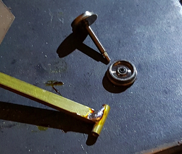 I was about half way thru this project when he passed, so it became something of a tribute to a more innocent--though still very sin filled--time 45 years ago. My original version 1.0 used a Bachmann cable car mechanism. On this one, I used the mechanism from an Aurora 'Thunderjet' slot car, Intermountain 36" wheelsets, and some brass bar stock I have on hand, and a Johnny Lightning Partridge Family bus found in a thrift store toy bag. Hopefully the pictures help walk you through what I did. It is quite fast, but fun to watch roaring down the track...in the last pictures, you will note that I added small wipers that extend out about a 1/8" from the track wipers for more positive power pickup.